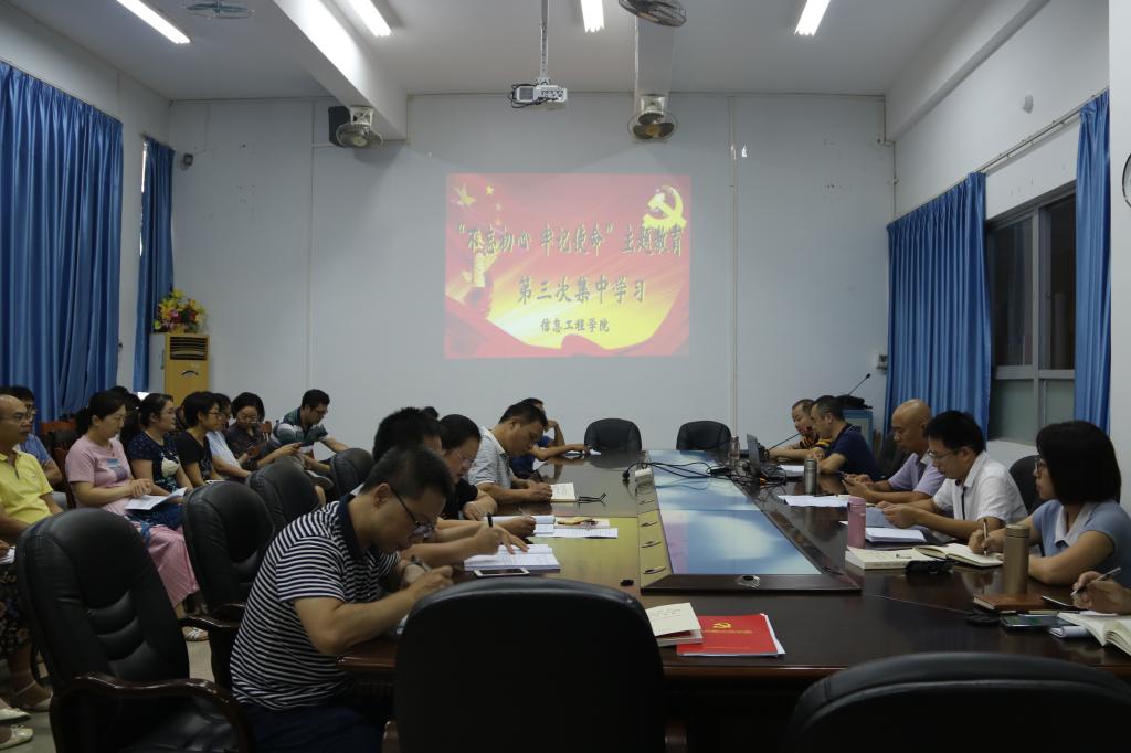 10月17日下午,信息工程学院举行“不忘初心、牢记使命”主题教育第三次集中学习研讨会议。学院党政领导,全体党员参加了会议。杨俊杰院长和陈波副院长分别就“习近平总书记对广东重要讲话和重要指示批示精神”这一专题作了学习辅导主题发言。会议由党委书记林汉同志主持。