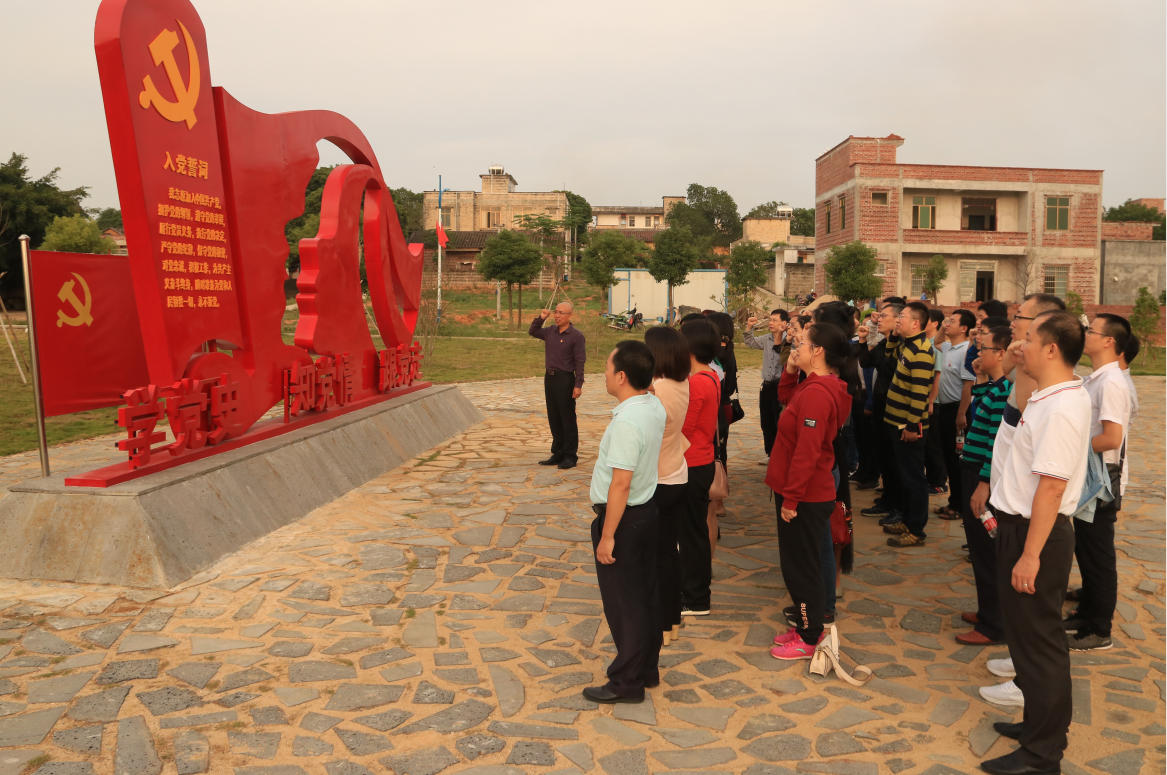 首先,党员同志们参观了初心广场、誓师广场、初心火炬塔、东征纪念碑、东征桥、东征湖。在下洋村革命历史事迹陈列馆,青年志愿者详细向党员同志们介绍了下洋村村史和革命斗争史,通过认真聆听,了解和感受了下洋村支持粤桂边区人民解放军光荣历史,以及粤桂边区人民解放军东征作战的艰难险阻,他们跋涉1000多里、作战20多次、共歼灭敌军160多人,彰显了革命先辈为民族解放和民族独立奋斗的光荣历史与英雄气概。大家通过听红色故事,悟红色精神,学习了红色文化内涵,收获了共识:把红色传统发扬好,把红色基因传承好!