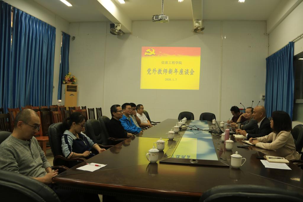 1月7日下午,信息工程学院党委召开党外教师新年座谈会,学院党政领导、各民主党派教师代表、无党派教师代表共聚一堂,同迎新春佳节,共话学院发展。会议由党委书记林汉同志主持。