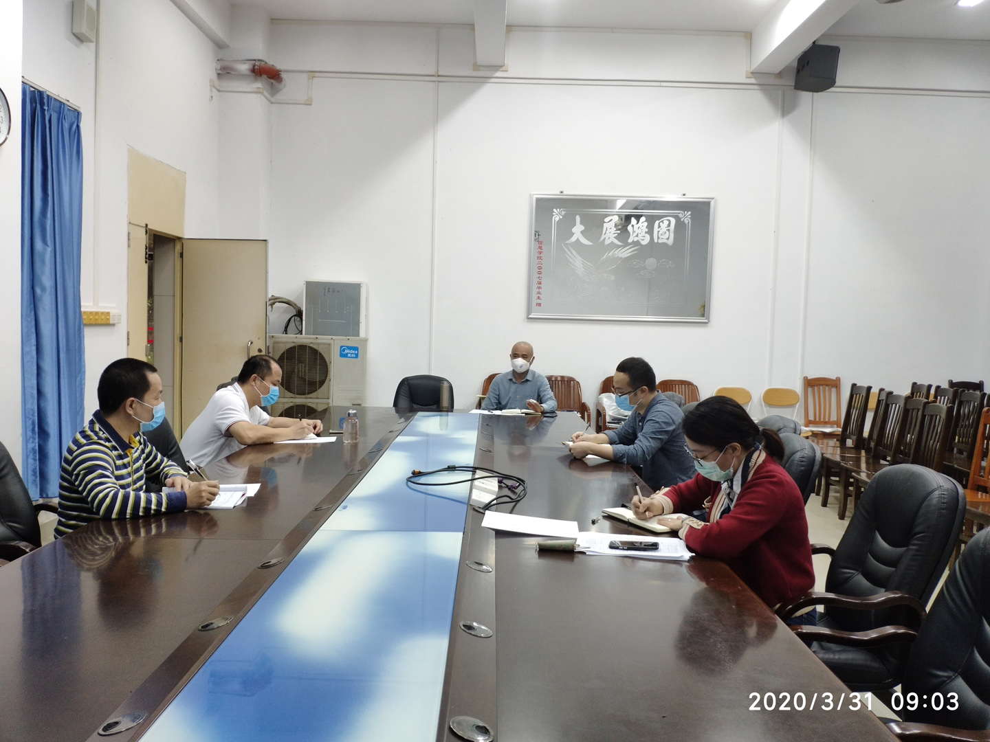 会议还研究、通过了各党支部“三会一课”工作开展实施要求,党员疫情专项捐款情况,以及学生就业、学生考研、学生征兵情况,教职工年度考核以及校友捐赠口罩的使用等事宜。