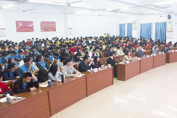 谈到认识自己。黄达海采用引经据典、哲理名言、寓言故事和自身经历的方式,深刻地警醒同学们要端正生活态度,正确认识自己和相信未来。他强调,对于自己,我们并非真正的知者。任何时候都要对自己和周边的环境有个正确的认识。他建议,一是不要和别人比较,要和昨天的自己比,优于自己才高贵。每个人天生与众不同,不可替代,不可复制,你就是你。二是从大学开始就要多思考人生的终极命题“我是谁?我从哪里来?我将到哪里去?”。三是始终为了进步而努力和始终设有阶段性的目标,有期待,相信未来。