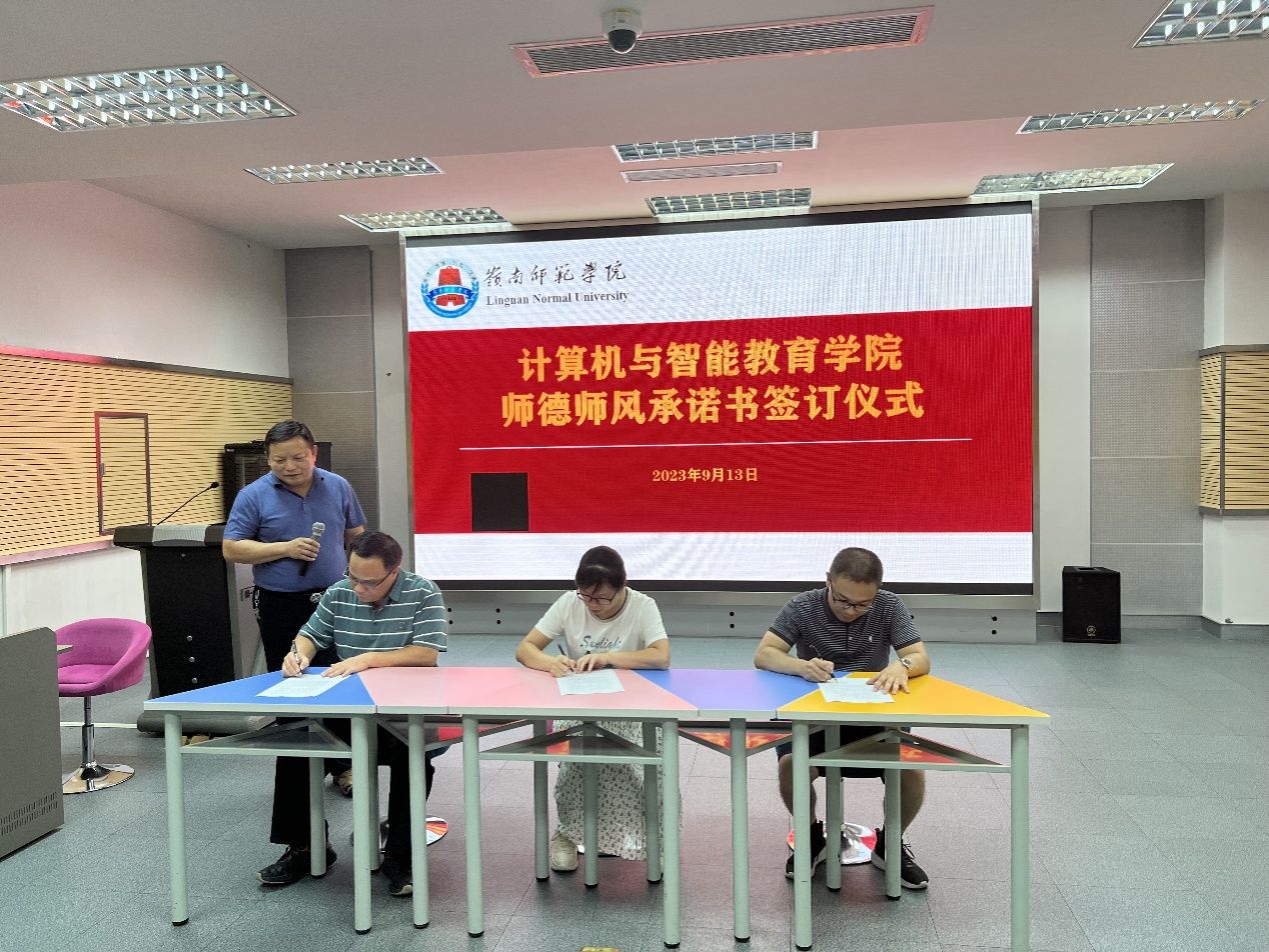 会议最后,全体教职工在师德师风承诺书上签字,承诺坚守教师职业行为准则,不忘教书育人使命,规范自身言行,廉洁奉公、谨遵师德、潜心教育。