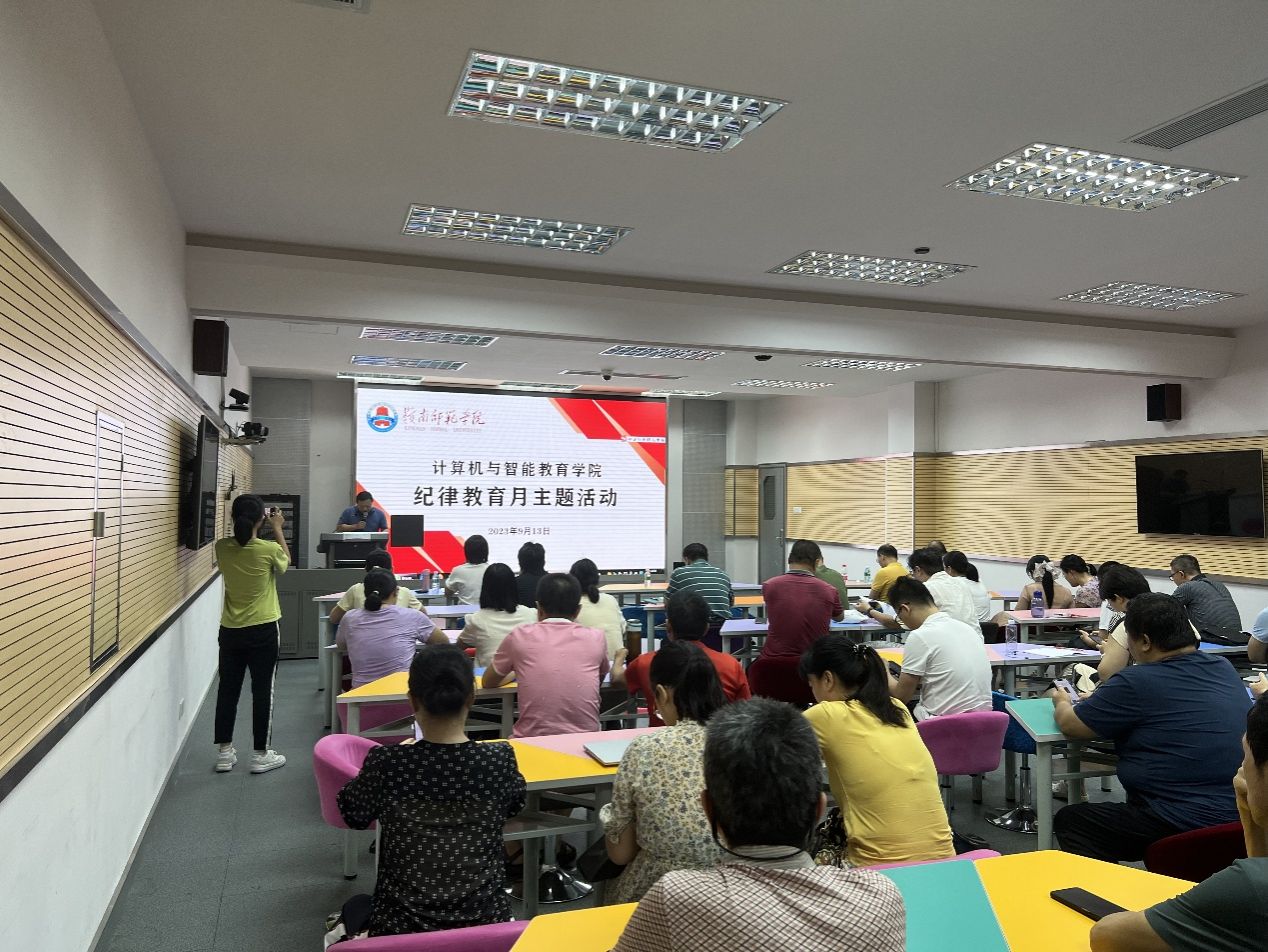为进一步深化全面从严治党,加强纪律教育,按照学校关于开展纪律教育学习宣传月活动的要求, 9月13日,计算机与智能教育学院在综B802会议室召开了全体教职工大会,展开专题学习纪律教育暨师德师风教育学习活动。学院党委书记李海文主持会议。
