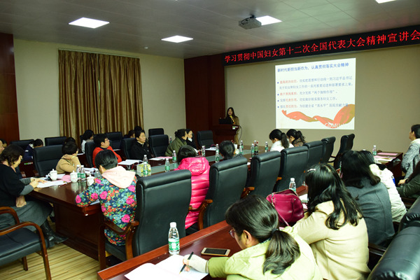 学校工会常务副主席林艳萍主持会议。她强调,要把学习宣传贯彻习近平总书记同全国妇联新一届领导班子集体谈话的重要讲话精神和中国妇女第十二次全国代表大会精神传达好、学习好、宣传好、贯彻好,要以此次宣讲会为契机,结合工作实际,团结带领学校广大妇女发挥妇女的独特作用,把思想和行动统一到学校的中心工作上,以更加饱满的工作热情和良好的精神状态,凝聚智慧和力量为决胜2020做出积极贡献。