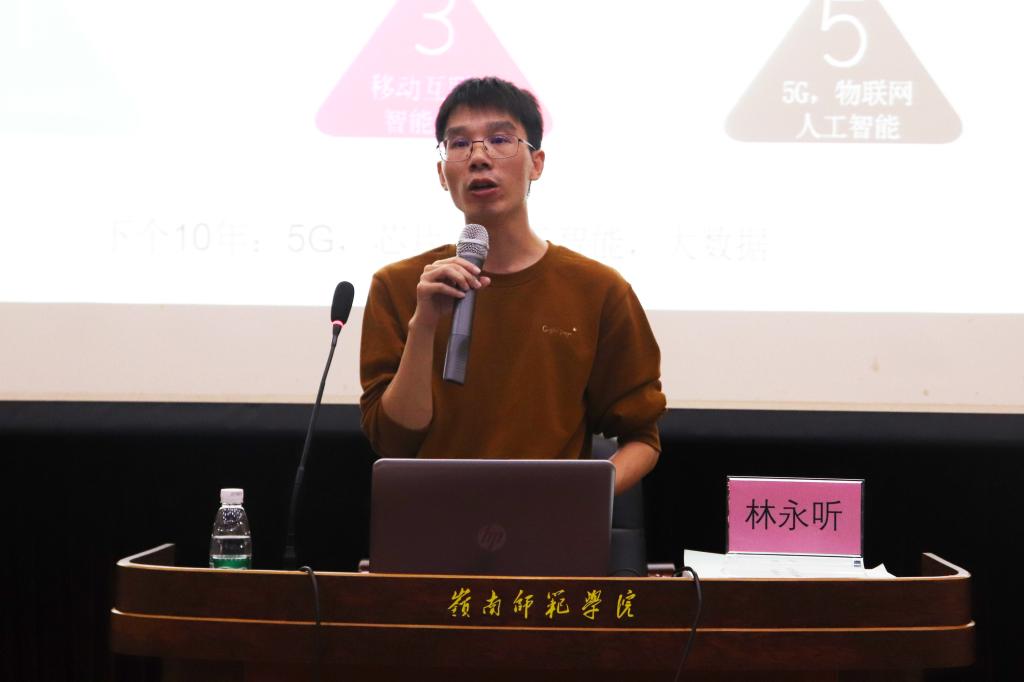 “自第一次工业革命以来,人类社会飞速发展,如今已进入信息化时代,正向未来智能时代前进”。以“与未来相遇“为题,林永听为学生讲述了工业化及计算机技术的发展历程,谈到高新技术产业在现今各大行业中的重要地位和未来的发展趋势。他谈到,当今企业对人才的需求在于术业有专攻,因而首先要对自身有较为清晰的定位,要在经验的沉淀过程中使技能走向专业化。针对“如何选择适合自己的工作“的问题,他建议学生可以通过参与课程设计、外出实习、参加比赛等方式来扩大自身知识储备,或者在写博客、研究开源项目乃至撰写学术论文中扩大知识输出,以建立自身影响力,为未来的职业生涯规划做充足准备。