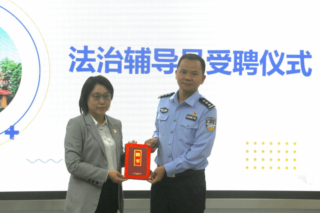 会上,陈明娟代表学院聘请郑德恩为学院法治辅导员,并颁发聘书。
