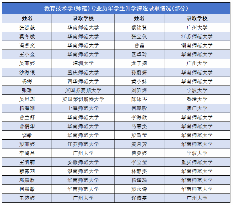 教育技术学专业是广东省一流本科专业,根据专业发展和产教融合的需要,创新人才培养模式,在2022级新生开始招收智慧教育创新实验班,并列入高考招生目录中。