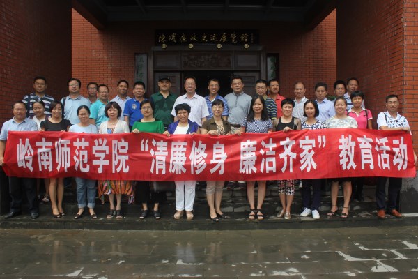 为贯彻落实学校纪律教育学习月的工作部署,扎实推进“两学一做”学习教育的深入开展,9月24日,学校党委副书记、纪委书记彭权群带领校纪委委员,部分党群、行政、教辅部门正处级领导干部及其配偶到雷州市清端园—— 陈瑸廉政教育基地开展“清廉修身 廉洁齐家”主题教育活动。