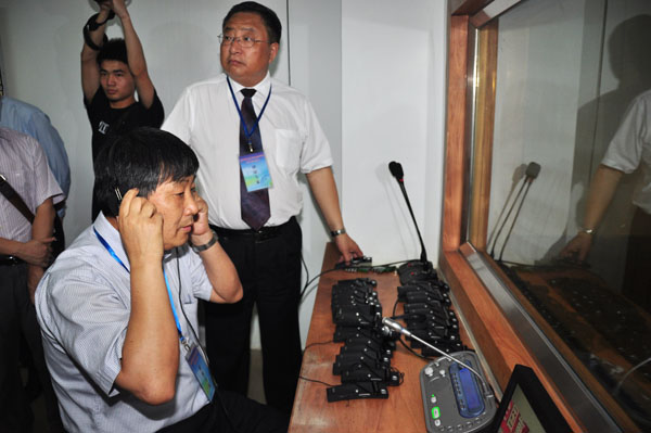 下午,评审专家组在罗海鸥、刘海涛、李永全、李江凌等校领导的陪同下,对商务英语专业的同声传译实验室、译员室、国际商务从业技能综合实训室、多功能模拟室,电子技术应用和计算机及应用专业的家电与制冷实验室、电视维修与技能实训室、电气自动化实验室、网络协议分析实验室,财务会计专业的会计教学法实训室、会计仿真模拟实验室、实验实训中心、会计分岗模拟实验室等进行了实地考察。