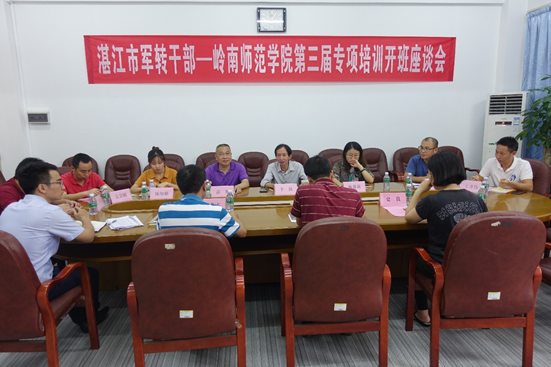 座谈会上,市退役军人事务局移交安置科李强科长首先对我校专项培训工作的大力支持表示感谢,并介绍了军转干部进高校培训的相关政策,对培训方式、经费、考核等方面做了说明。市委组织部人才二科曲莉莉科长要求学员们端正思想态度,充分认识军转干部培训的重要性和必要性,珍惜这次宝贵的学习机会。接着5名军转干部纷纷发言,表示会发扬军队的优良传统,努力学习,为地方经济腾飞贡献自己的力量。法政学院冯亮如书记简单的介绍了我校和法政学院的基本情况,介绍了培训课程的安排,表示会派出最强师资,全力以赴做好此次军转干部研修的具体工作。郭春才副院长最后强调,希望各位学员转变角色,严格遵守学校各项管理规定,通过学习尽快适应从部队到地方的转变。