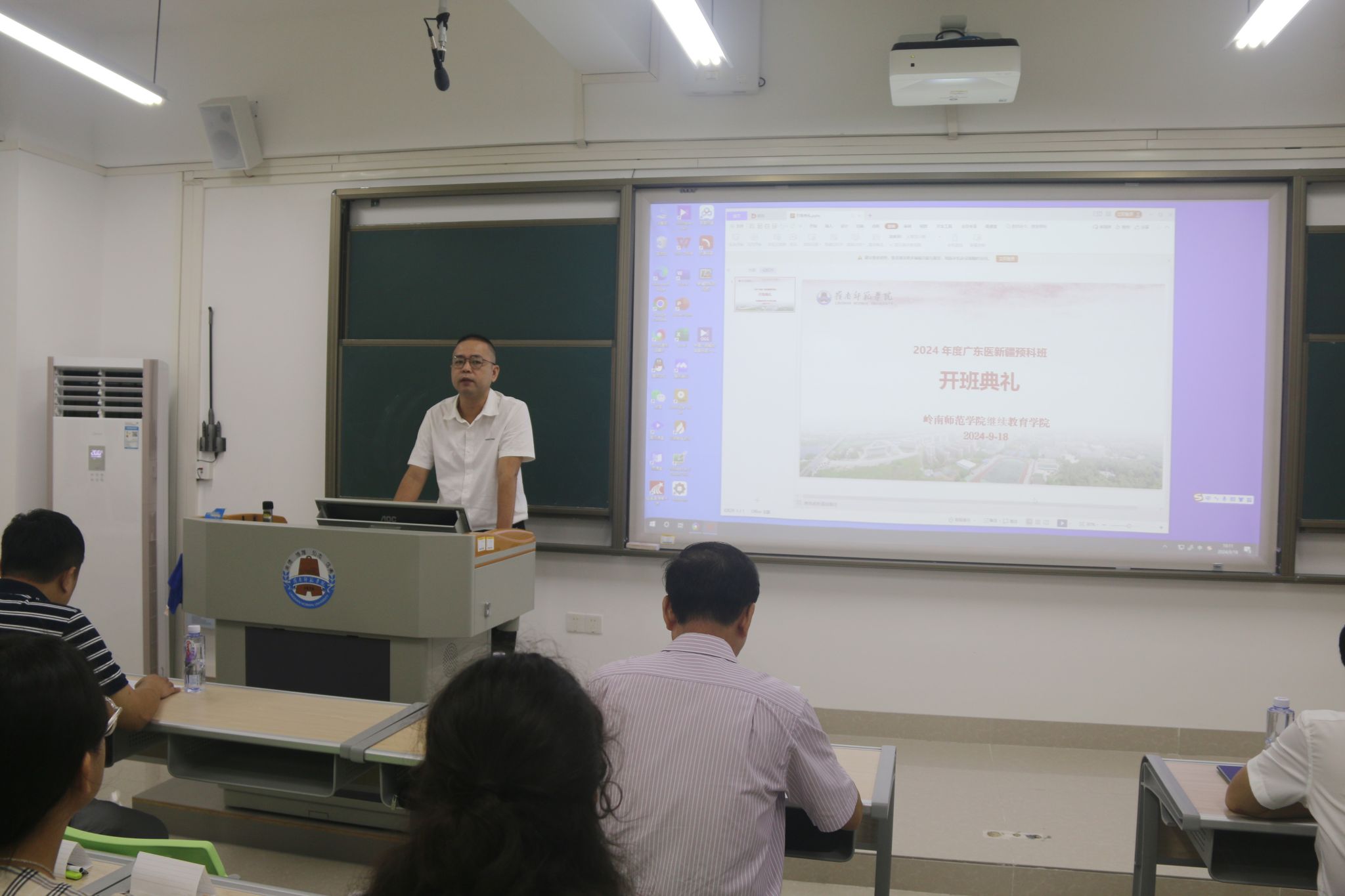 广东医科大学学生工作部副主任陈晓光、教务部科长杨迪,岭南师范学院继续教育学院副院长唐洪浪、教育科学学院老师郑燕东、学生工作部老师凯丽马、继续教育学院老师梁纳、学生助理等参加开班典礼。