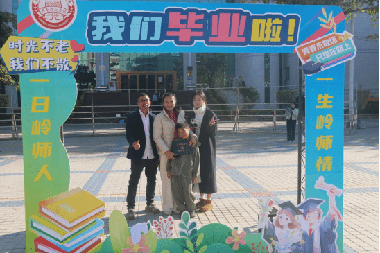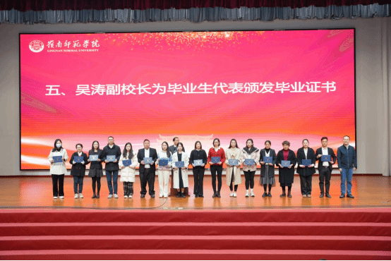 学校副校长吴涛为毕业生代表颁发毕业证书,随后全体人员起立同唱校歌《师道之光》。在满怀激情的校歌声下,毕业生们纷纷走向学校专门设置的打卡点处合影留念,留下最美好的奋斗印记。