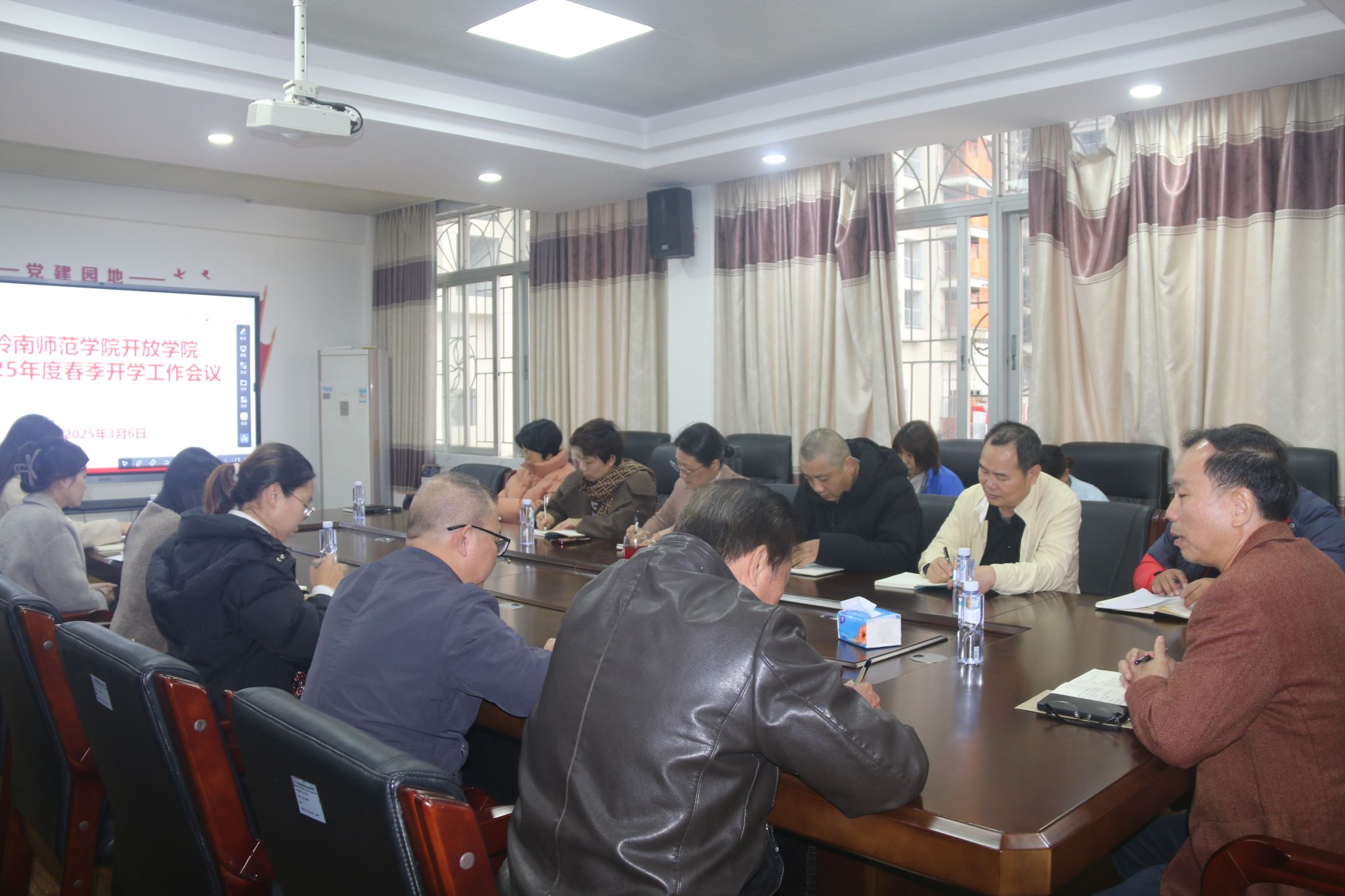 3月7日,我校开放学院在椹川校区会议室召开2025年度春季开学工作会议,旨在总结2024年工作、研究部署下一步重点工作、研究解决存在的问题与困难等。继续教育学院领导班子成员、相关科室负责人及老师,合作方管理人员等出席会议。