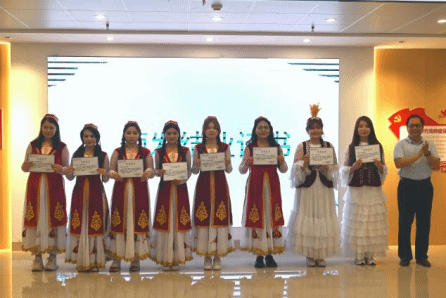 预科班学生通过教学成果汇报的形式展示一年来的学习成果,展演内容包括集体朗诵、健美操、现代舞、特色民族舞蹈,以及用汉语介绍家乡风土人情、用英语演绎经典影视配音等,还观看了学生自己制作的“文化润疆”主题视频。丰富的汇报内容全方位展现了预科阶段的学生们在语言能力、文化融合、综合素质等方面的培养成效。