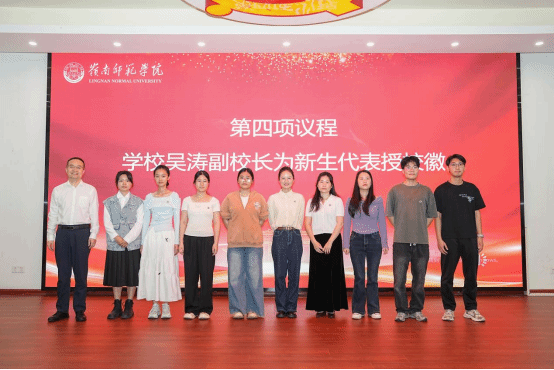 学校副校长吴涛为新生代表授校徽