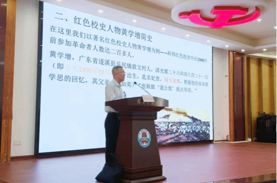 陈国威系统梳理了学校百年发展脉络,展现学校深厚的办学底蕴与红色根基,详细讲述了南路农民领袖黄学增的典型事迹,回顾其求学、投身革命、传播马克思主义、领导农民运动、开展武装斗争的光辉历程,引导和鼓励新生学习黄学增一心为民、不畏牺牲、坚定信仰、勇于担当、勤奋好学的崇高品格。