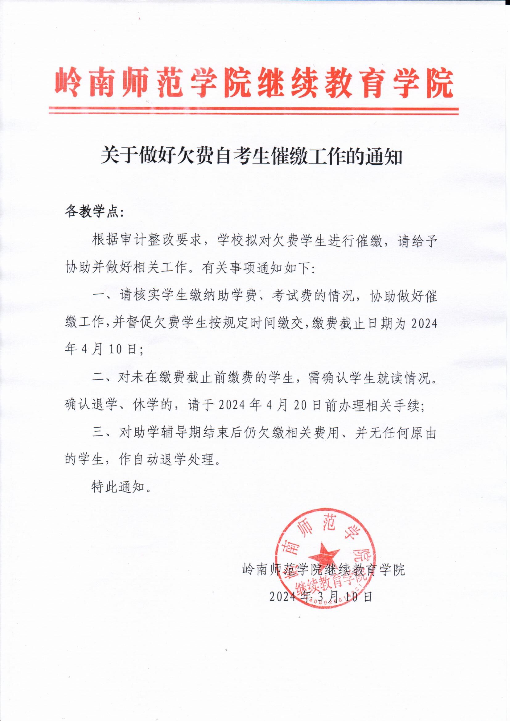 关于做好欠费自考生催缴工作的通知