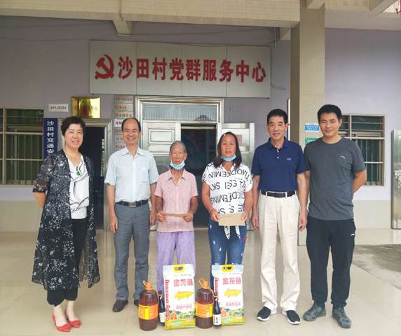 在沙田村党群服务中心,我院四位同志先向我校驻村扶贫干部叶德波、李延辉同志详细了解了对口帮扶对象的家庭近况。随后他们分别探望了对口帮扶对象五保户叶伟清和贫困户陈亚清的家人,了解家庭情况,代表继续教育学院送上帮扶资金和粮油食品,祝福她们身体健康,并勉励她们自立自强,争取早日脱贫,过上富足生活。
