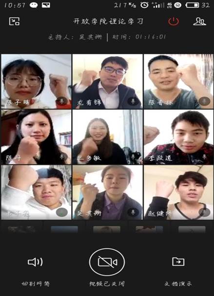 除了确保疫情防控期间学生“不停学”,保证学生的学业不受疫情影响外,继续教育学院党总支重视引导广大学生树立科学防疫意识,增强战胜疫情的信心,在不同的岗位上为打赢疫情防控阻击战和维护国家的安全稳定作出岭师学子应有的贡献。2月17日上午,共青团岭南师范学院继续教育学院委员会以视频会议的形式组织开放学院团员青年开展线上团日活动,集体学习习近平总书记《坚决打赢疫情防控的人民战争总体战阻击战》的重要讲话精神和一系列重要指示精神、《习近平战“疫”全攻略》、广东省教育厅《关于全员全过程全方位周密防控确保开学安全的通知》以及岭南师范学院相关文件精神,然后组织参会师生研究了如何结合开放学院实际充分落实学校的防控措施,引导青年学生要理性看待新冠肺炎疫情,端正心态,加强思想认识,做到科学防护;在安全的前提下,在家乡主动奉献,传播正能量,做一个有良知、有责任、有担当的青年。