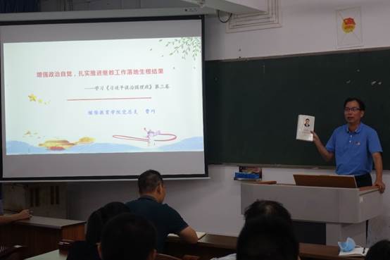 9月16日下午,继续教育学院党总支理论学习中心组在教二408室举办《习近平谈治国理政》第三卷专题学习辅导,由党总支书记、院长曹巧作辅导。