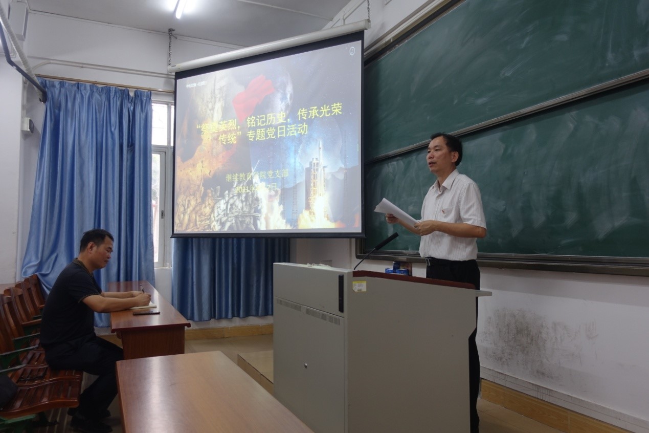 继续教育学院党总支书记曹巧指出,本次专题党日活动是贯彻落实学校党史学习教育工作部署,是学院党史学习教育的具体内容之一,希望全体师生通过清明追思,缅怀英烈,追溯红色记忆,珍惜来之不易的幸福生活;希望共产党员汲取信仰力量,初心如磐,砥砺前行;希望英烈未竟的事业,我们去承担,民族复兴的火炬,我们来传承。