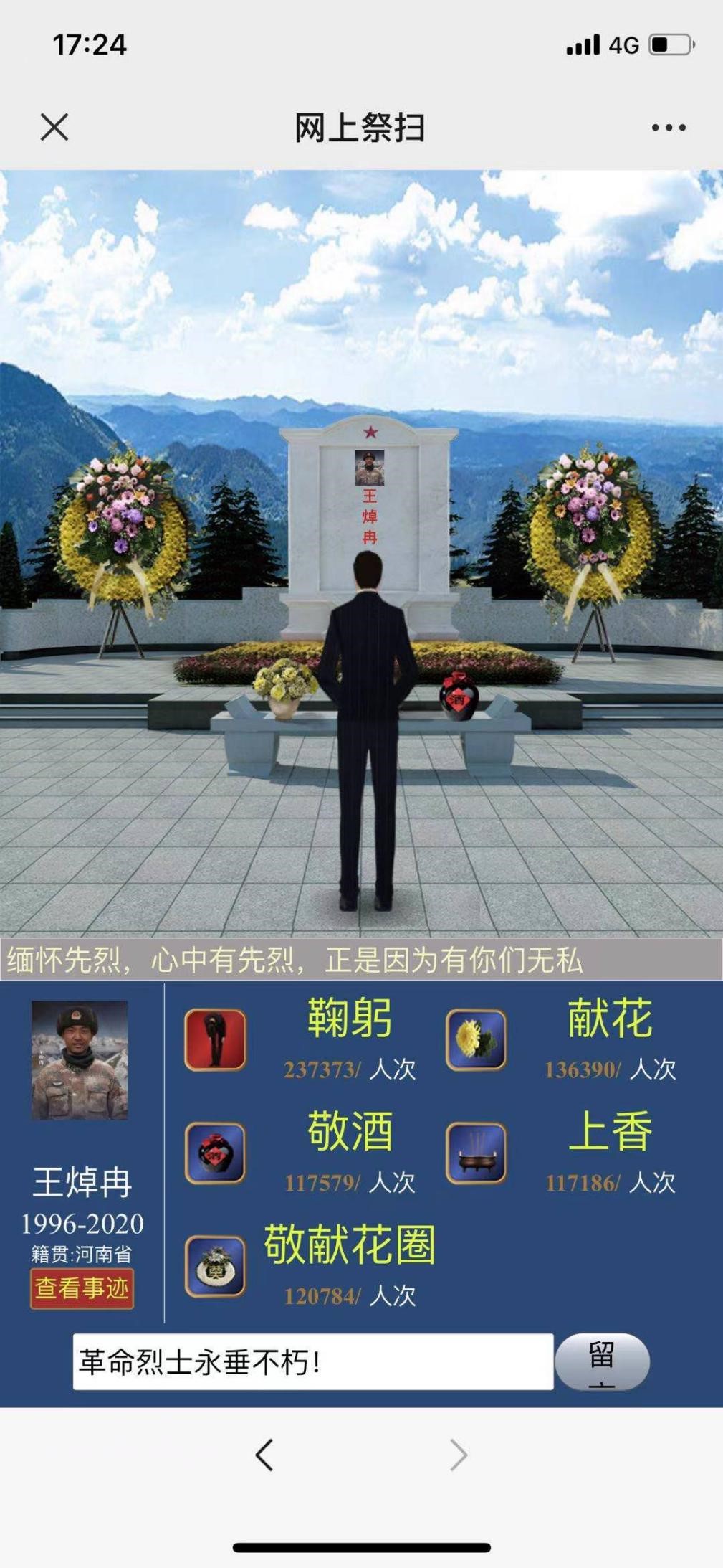 唐洪浪带着大家打开“2021守护清明祭英烈”链接,观看红色故事,铭记英烈功勋,阅读习近平总书记关于崇尚英雄、缅怀先烈的论述,组织线上瞻仰、感恩寄语、祭奠英烈、守护英烈等活动,为英烈献花、敬酒、上香、鞠躬、敬献花篮。