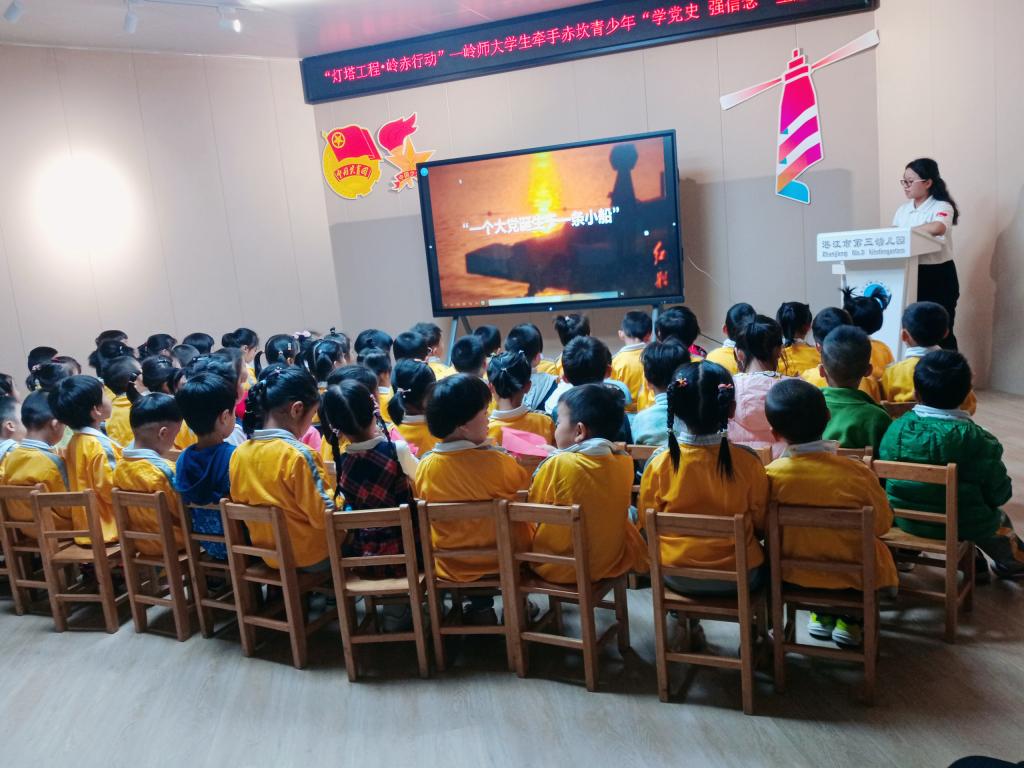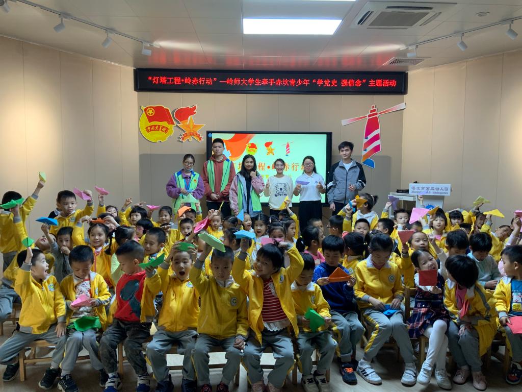 本次大学生“培根”宣讲团宣讲活动深入幼儿园课堂,牵手赤坎青少年“学党史,强信念”,引导学生爱党、爱国,弘扬“红船精神”,对青少年爱国教育起着重要作用。