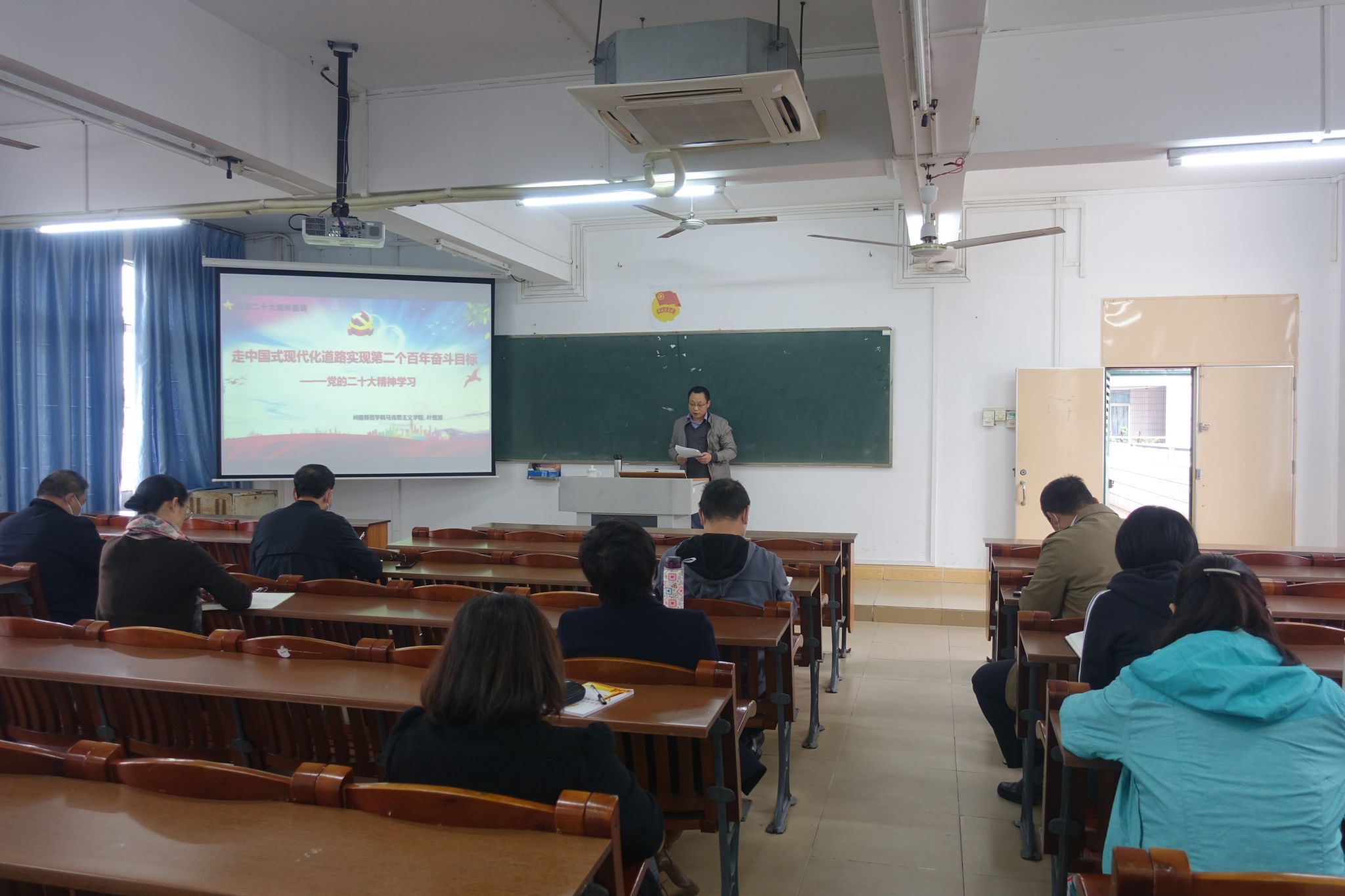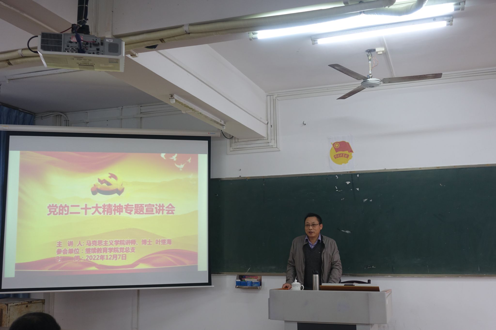 12月7日下午,继教院于教二408教室召开深入学习贯彻党的二十大精神专题宣讲会。学校宣传团成员、马克思主义学院叶继海博士作“走中国式现代化道路实现第二个百年奋斗目标——党的二十大精神学习”专题宣讲。宣讲会由继教院党总支书记、院长曹巧主持。