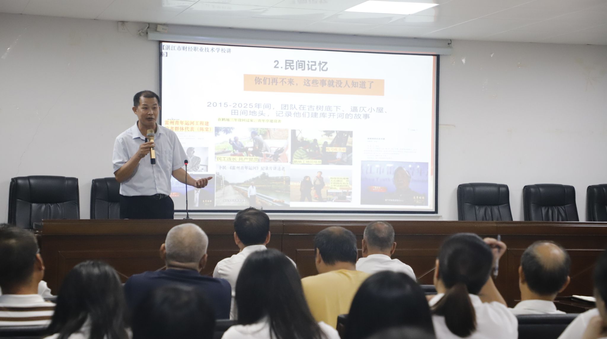 签约挂牌仪式后,岭南师范学院马克思主义学院林兴教授应邀作《重读建库开河:一种精神,无限力量》专题授课。他深情回顾了那段艰苦卓绝的奋斗历程,深刻阐释了建库开河精神中蕴含的信念力量、为民情怀与实干担当,引导全体人员从红色基因中汲取精神滋养,坚守教育报国初心。