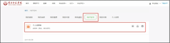 (2)在【电子证书】中选择“个人成绩单”,可预览、下载、在线打印成绩单。