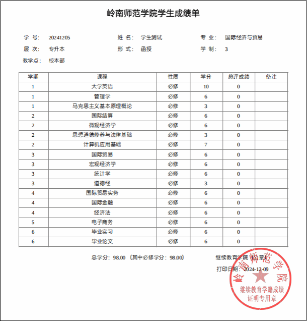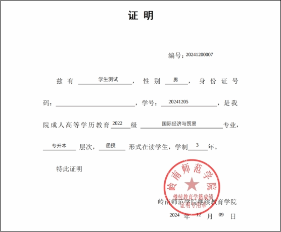 成绩单、学籍卡和在读证明统一加署“岭南师范学院继续教育学院成绩学籍证明专用章”,该专用章已纳入到学校电子签章平台,电子签章与实体印章一样具有同等法律效力。