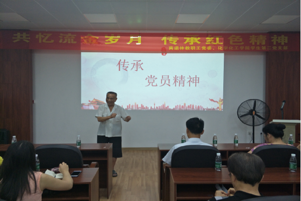 为让党员同志们进一步了解“红色精神”,并从红色精神中得到启示,5月25日下午,离退休教职工党委与化学化工学院学生第二党支部在燕岭阁老干会议室以“共忆流金岁月,传承红色精神”为主题的红五月组织生活活动。活动嘉宾有十二位离退休教职工党委委员、老同志代表、化学化工学院学生第二党支部党员及入党积极分子代表。