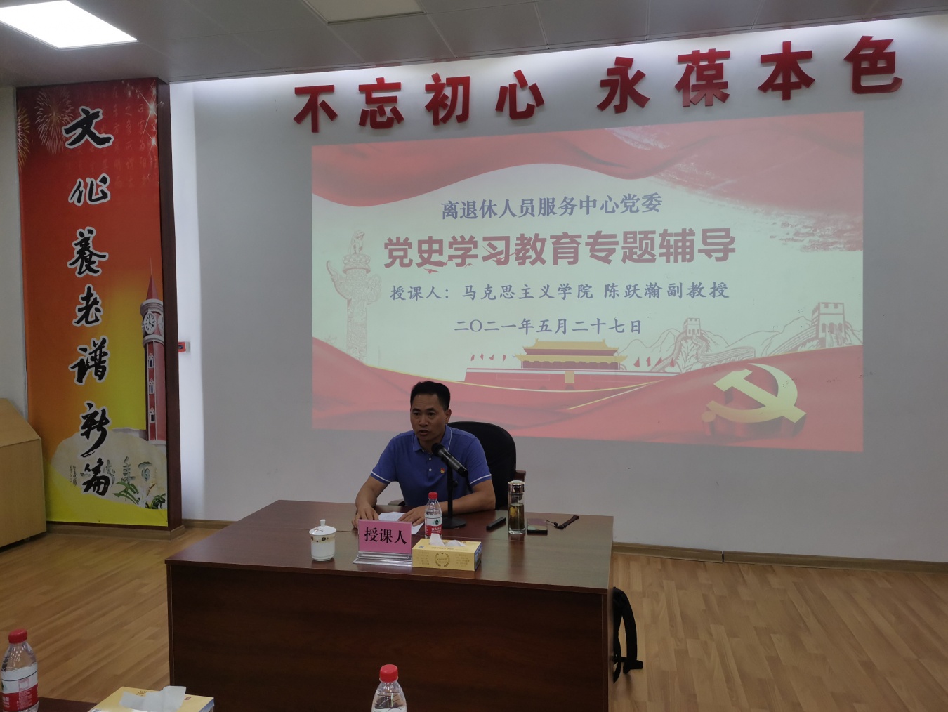 为深入贯彻落实习近平总书记在党史学习教育动员大会上的重要讲话精神,切实将党史学习教育推深走实,5月27日下午,离退休人员服务中心党委组织开展党史学习教育专题宣讲,由党委书记庞景才主持,邀请学校马克思主义学院陈跃瀚博士给百余名老党员进行“四史”学习教育之改革开放史宣讲辅导,将党史学习教育、实践与老龄党建深度融合,切实把党史学习教育不断引向深入。