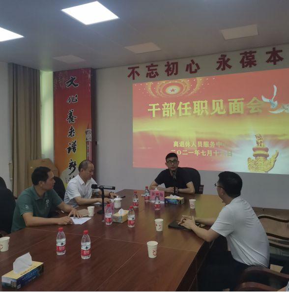 根据学校工作安排,7月16日下午,离退休人员服务中心召开干部见面会,学校党委副书记黄达海带领党委组织部部长邓逢光深入会议现场宣布了干部任职通知。会议由离退休党委书记、主任庞景才主持,离退休党委委员、党支部书记、老同志代表和行政人员近30人出席了会议。