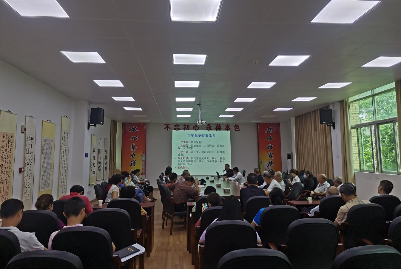 为深入学习贯彻习近平总书记在庆祝建党100周年大会上的重要讲话精神,推动第二阶段党史学习教育走深走实,10月14日下午,离退休党委在党员活动中心集中开展党史学习教育宣讲辅导,由党委书记欧海清主持,邀请学校马克思主义学院副院长施保国授课进行专题授课,离退休党委、支部全体委员和党员代表近80人出席会议。