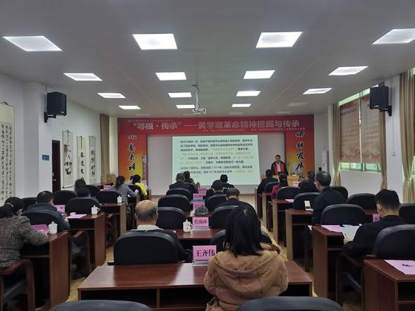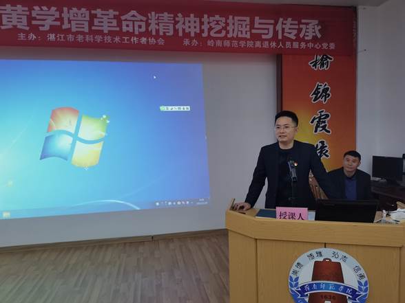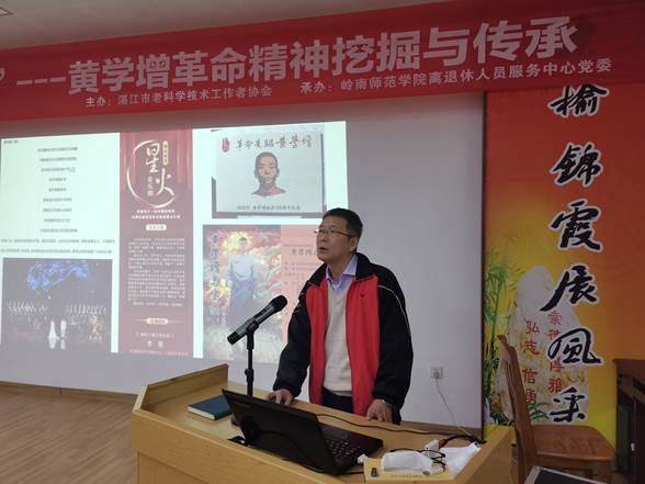 国内黄学增研究专家、法政学院副教授陈国威博士围绕“传承红色基因—我们学校走出的革命者(黄学增)及其当代意义”作了专题报告,还播放了他指导拍摄的纪录片《黄学增与省港大罢工》和岭南师范学院大型原创历史情景剧《南路先锋》。他还为大家介绍了一些填补党史空白的新史料,重现了一个更鲜活的黄学增革命先烈形象。