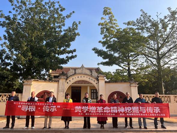 为深入学习贯彻落实党的二十大精神,进一步传承红色基因,赓续红色血脉,汲取奋进力量。12月9日,由湛江市老科学技术工作者协会主办,岭南师范学院离退休人员服务中心党委承办的“寻根•传承”—黄学增革命精神挖掘与传承主题党建系列活动在岭南师范学院和黄学增故居顺利举行。