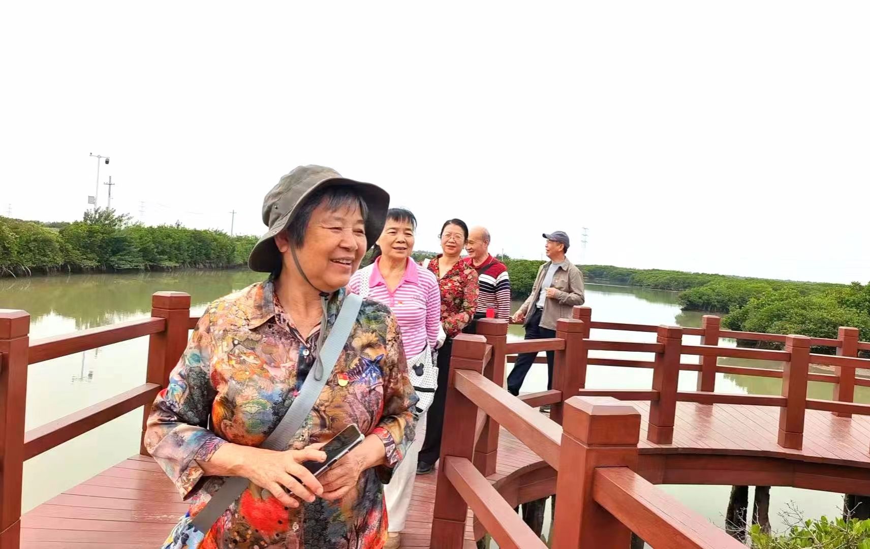 老党员们在红树林景区边走边参观,切身感受红树林建设的发展成果。大家认为,红树林的建设历时长久,但现在的建设成果令人十分欣慰。普遍表示,绿水青山就是金山银山,希望我们人人都要行动起来,共同守护建设好我们的红树林。