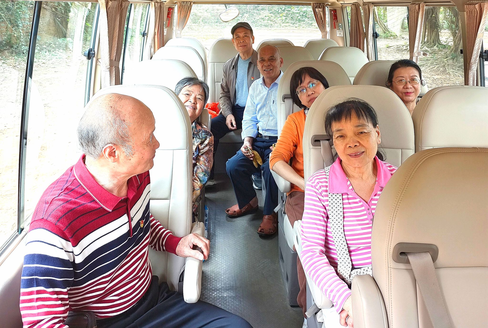 老党员们在“行走的课堂”——中巴车上召开学习会