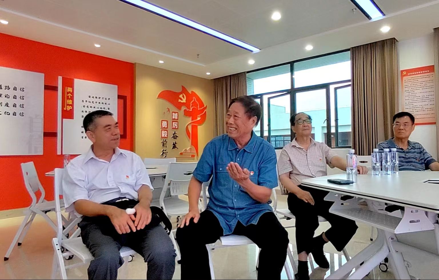 第八党支部老党员、退休老领导梁友、胡克伟、刘海涛、刘周堂和在职人员党支部党员、离退休中心党委书记欧海清、副主任叶德波等人参加活动。