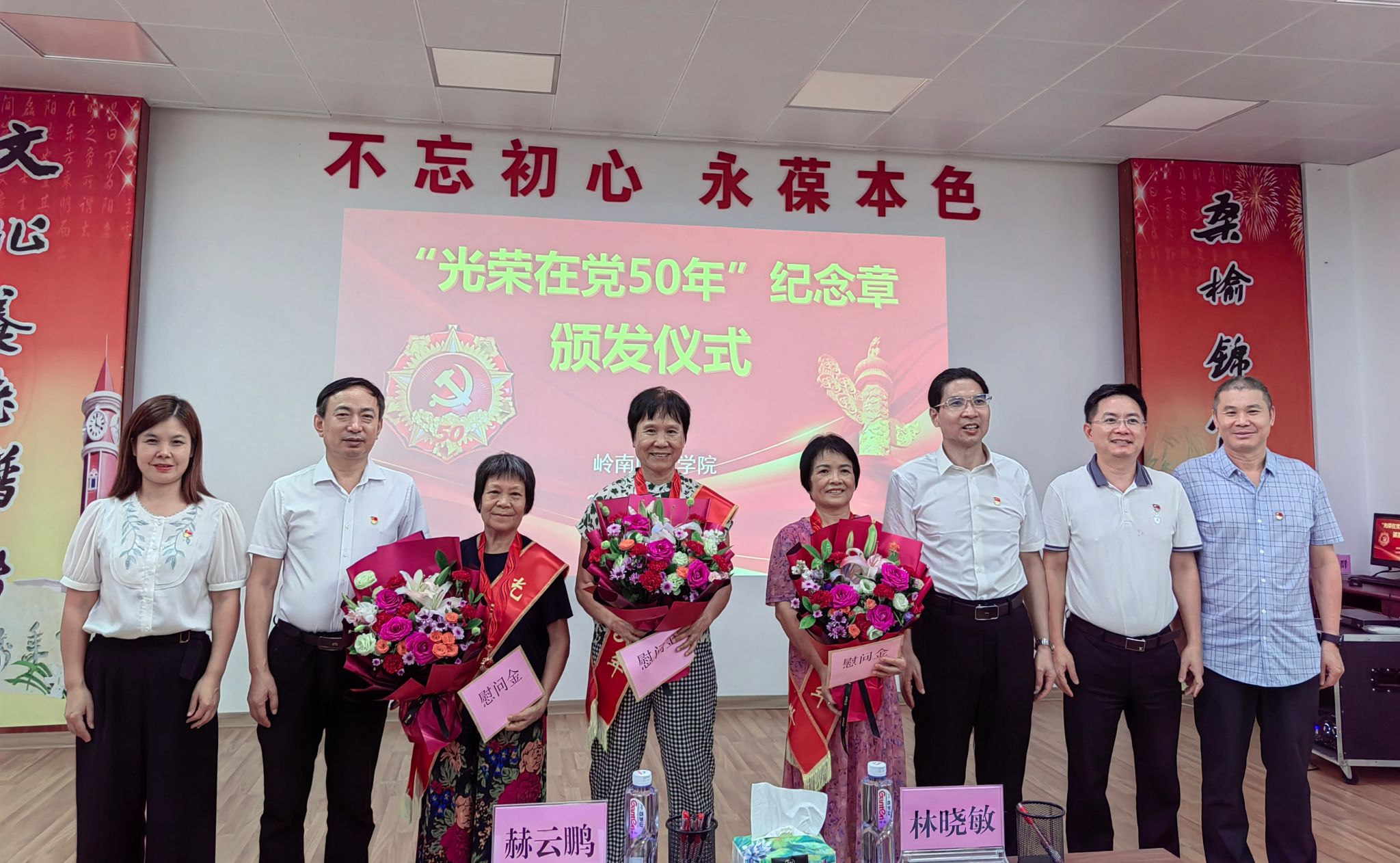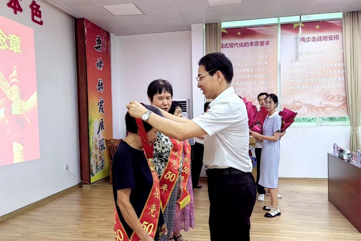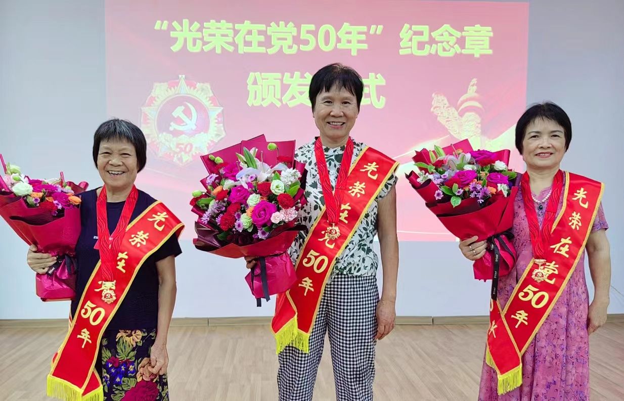 50年党龄,50载荣光。为庆祝中国共产党成立103周年,进一步增强广大党员的荣誉感、归属感和使命感,6月27日下午,学校党委在离退休会议室举行“光荣在党50年”纪念章颁发仪式。学校党委副书记林晓敏出席仪式并为黄梅、潘小兰、陈莲英等3名在湛老党员颁发“光荣在党50年”纪念章。仪式由离退休人员服务中心党委书记、主任欧海清主持。