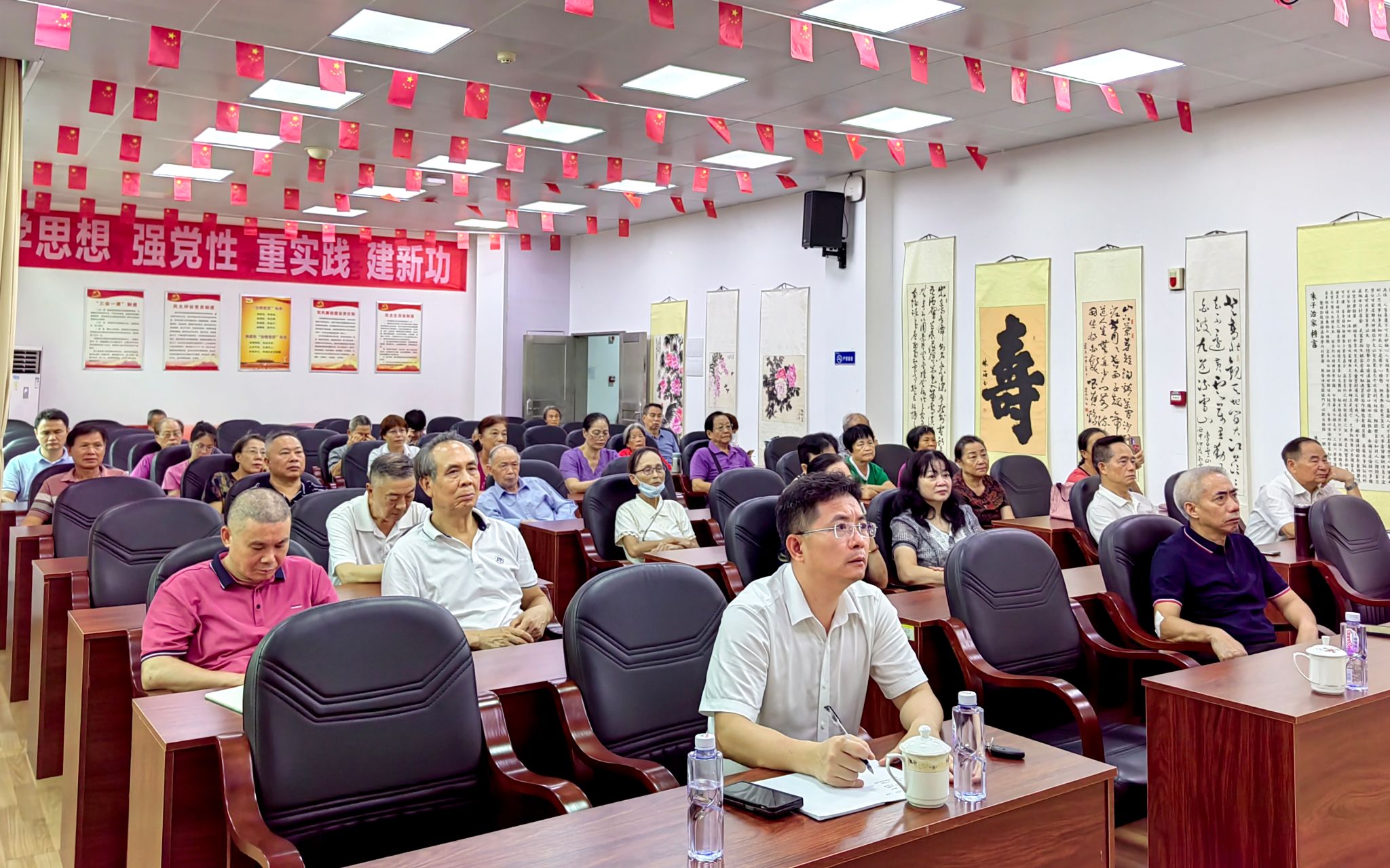 离退休党委委员、党支部书记、党支部委员、老党员代表、关工委成员和在职党员及入党积极分子共50余人参加宣讲会。