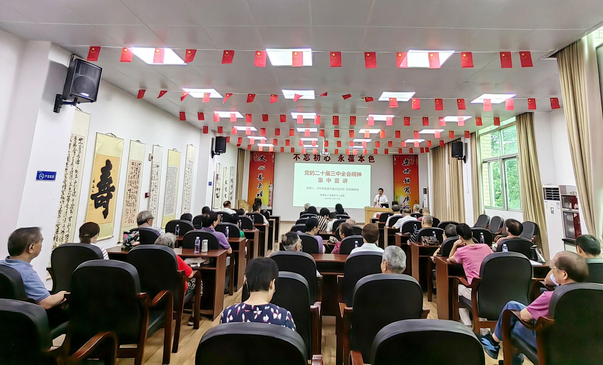 为深入学习贯彻党的二十届三中全会精神,10 月 17 日下午,离退休人员服务中心党委邀请学校党委理论宣讲团成员陈国威教授在离退休会议室开展党的二十届三中全会精神集中宣讲辅导。宣讲会由离退休人员服务中心党委书记、主任欧海清主持。