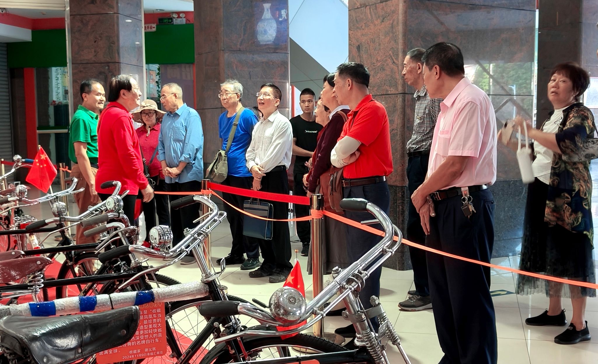11月11日上午,离退休第四、第五党支部积极响应学校学习贯彻党的二十届三中全会精神的号召,联合组织党员前往赤坎区古玩城开展参观《国宝国礼自行车收藏展》主题党日活动。