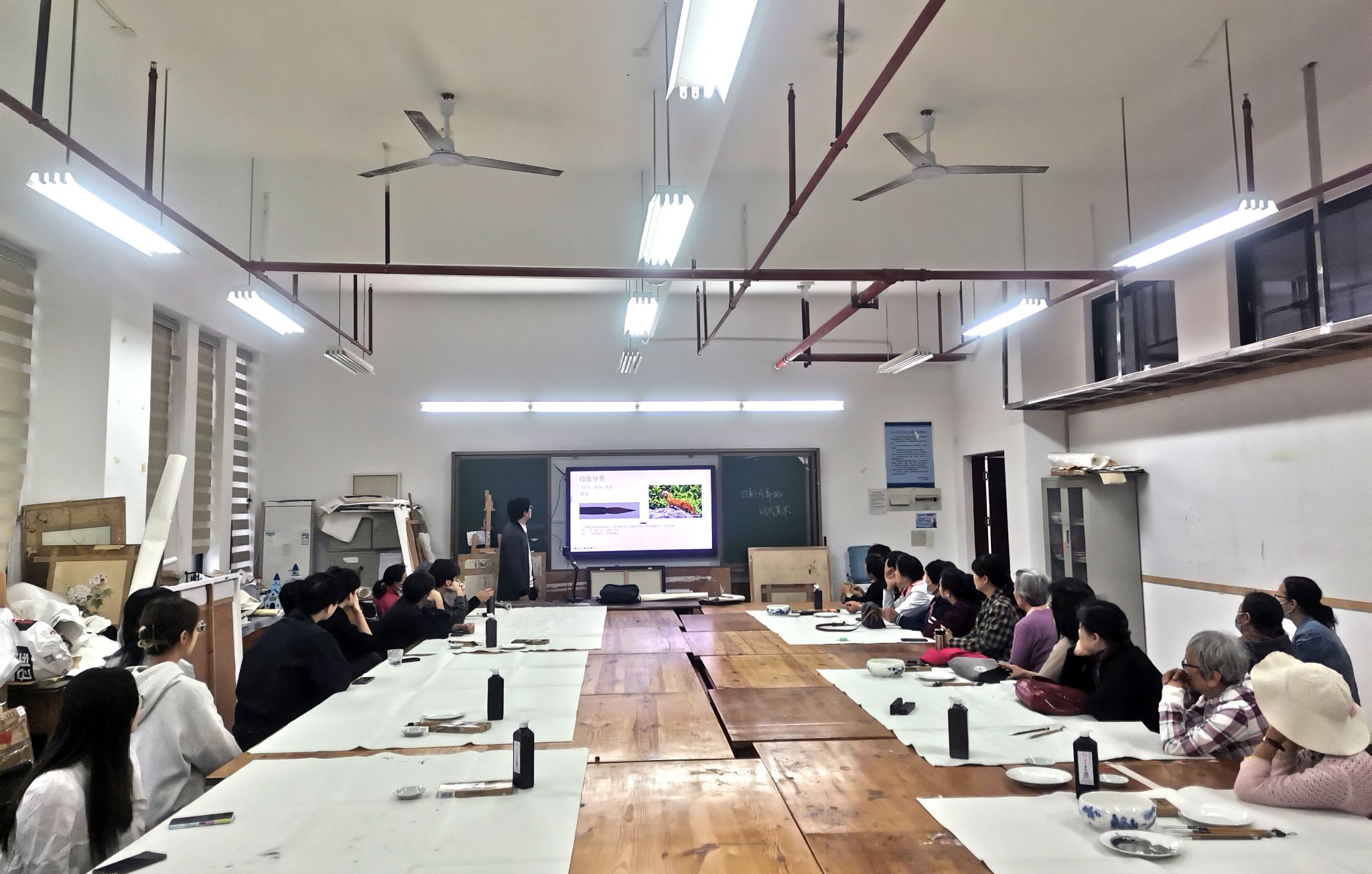 为进一步加强校地合作、资源共享,促进老年大学国画班学员对中国画技法的认知和掌握,124日上午,校老年大学协同赤坎区老年大学由两校副校长叶德波、庞泽繁带队,组织两校国画班21位学员,到学校美术与设计学院开展高校中国画教学笔会研习活动。活动由学校老年大学美术教研员、美术与设计学院美术系主任胡江博士主持。