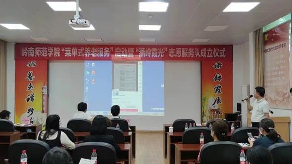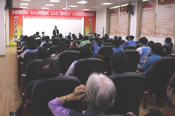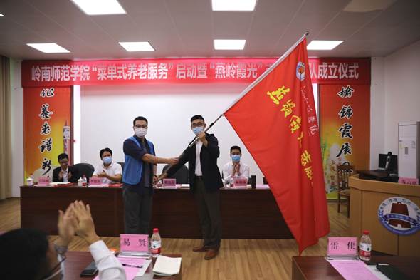 岭师新闻中心讯:11月25日下午,岭南师范学院“菜单式养老服务”启动暨“燕岭霞光”志愿服务队成立仪式在燕岭阁举行。学校党委副书记黄达海出席并为志愿服务队授旗。离退休人员服务中心党委书记、主任欧海清主持仪式。