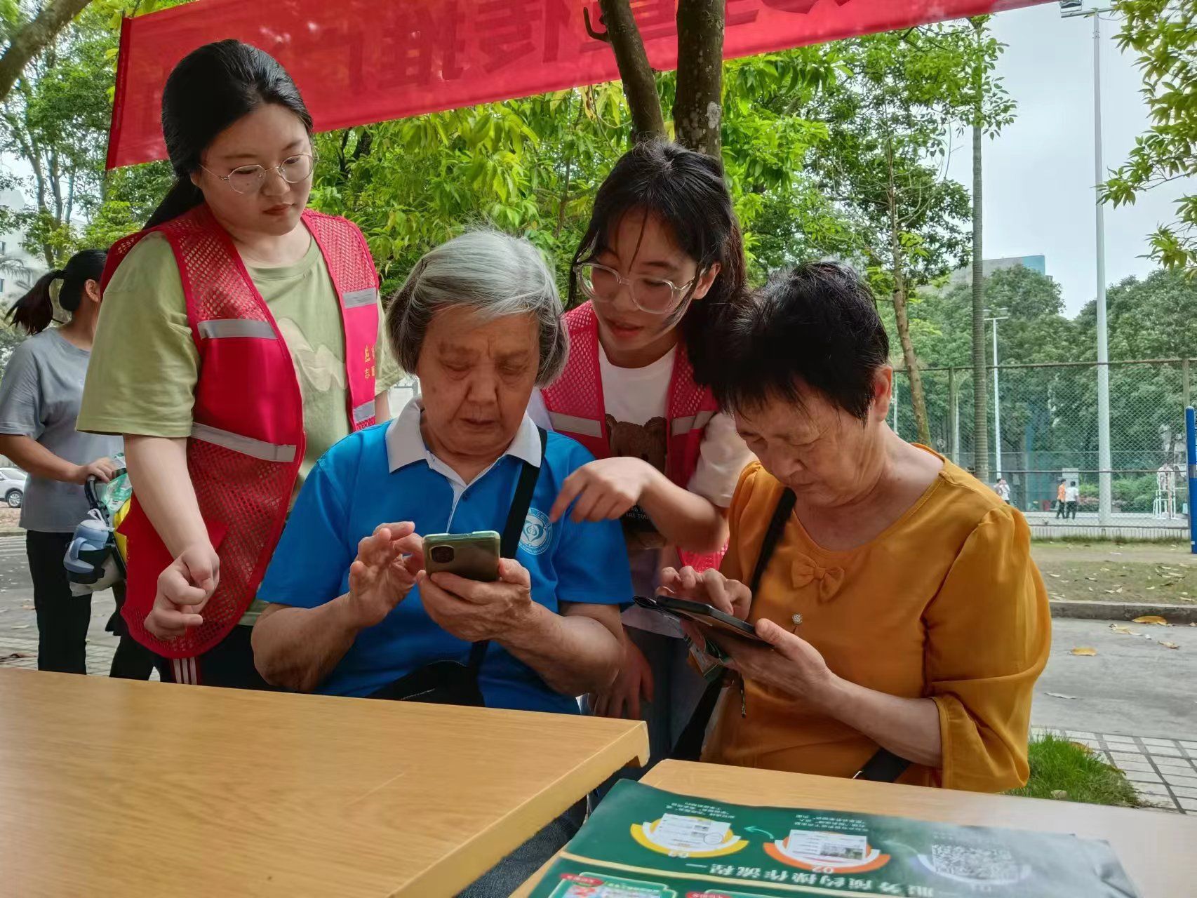 志愿者们耐心指导老同志手机下单预约志愿服务