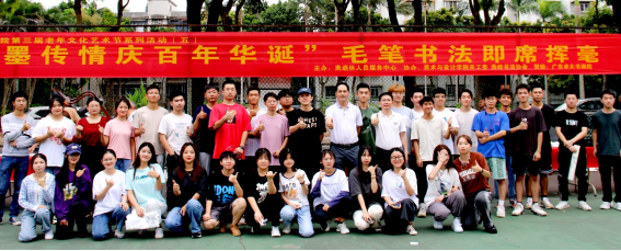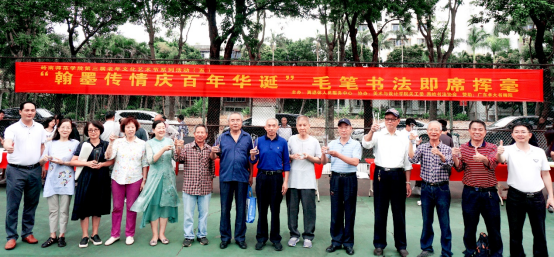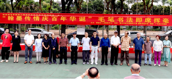 据欧海清介绍,这次即席挥毫活动由离退休人员服务中心主办,美术与设计学院关工委、燕岭书法协会协办,广东卓大书画院赞助。13位退休老师和13名青年学生同台书写家国情怀,展示百年光辉,传承百年薪火,赓续红色血脉。这既是本届老年文化艺术节向建党100周年献礼的重要一环,也是为岭师校园文化增辉的浓重一笔。