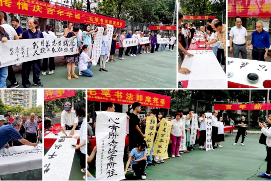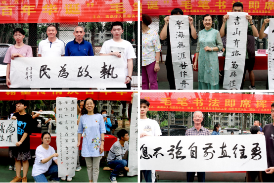 随后,离退休教职工书法爱好者在掌声和欢呼声中入席执笔挥毫,书写爱党爱国情怀,展示中国书法艺术。随着笔墨游动,凤舞龙飞,众人或屏气观看,或放声喝彩,或品评点赞,或开怀大笑……现场气氛热烈,热闹非常。