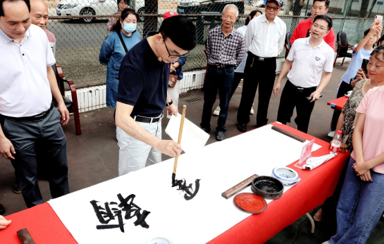 黄达海为本次活动举行开笔仪式,现场题写了“翰墨传情”四个主题大字,气韵刚劲有力、笔法灵动潇洒,吸引在场人员的围观点赞。